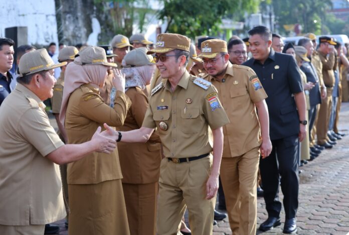 Sumsel.Wartadaerah.com, Palembang – Wali Kota Palembang Ratu Dewa dan Wawako Prima Salam bersilaturahmi dengan Aparatur Sipil Negara dan pegawai Non ASN, Selasa (8/4/2025).