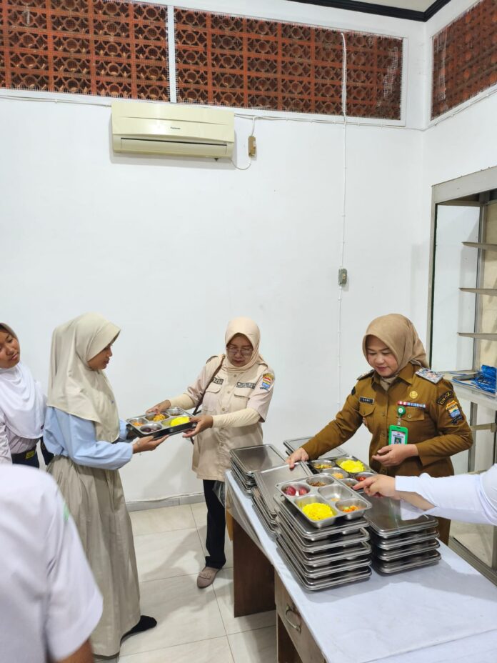 Kehadiran lurah di tengah siswa dan guru menambah motivasi tersendiri. Para siswa tampak antusias menerima makanan bergizi yang dibagikan, mulai dari buah segar, susu, hingga menu sehat yang disiapkan dengan standar kebersihan.